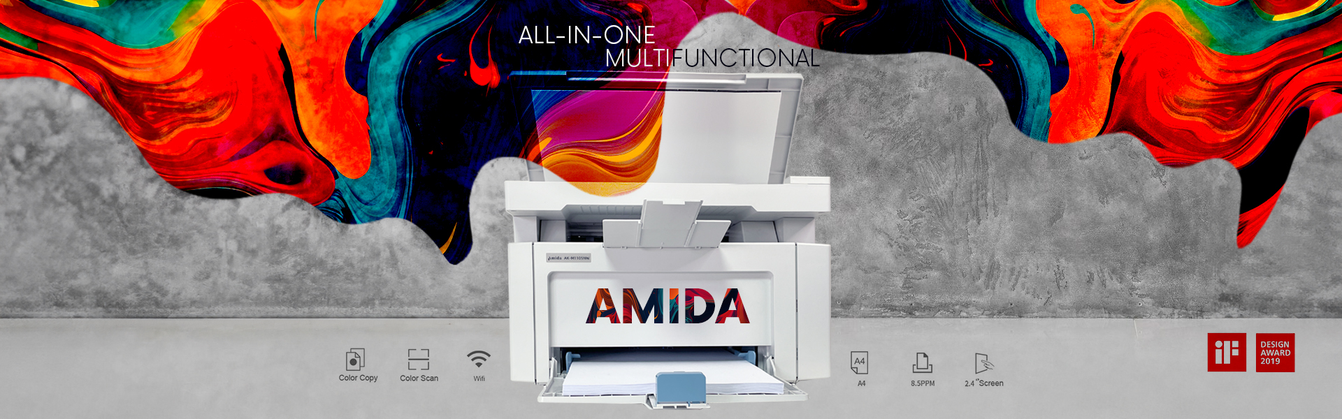 Multifunctional Amida AK M1105NW A4 USB retea RJ45 WiFi 20ppm monocrom Specificatii: Specificatii tehnice Model AK-1105NW Functii Imprimare. Copiere. Scanare Viteza de imprimare Monocrom (normal...